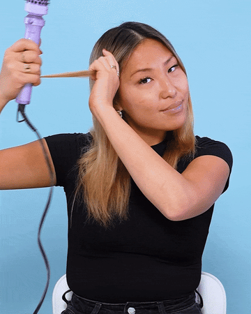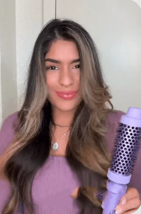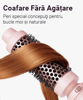 Nu, peria de ondulare trebuie folosită doar pe păr uscat. Nu suflă aer, dar are peri termici mai lungi care prind și alunecă delicat prin păr, ajutându-te să înfășori părul pe cilindru pentru un styling neted și cu volum. Este ideală pentru bucle lejere și volum.