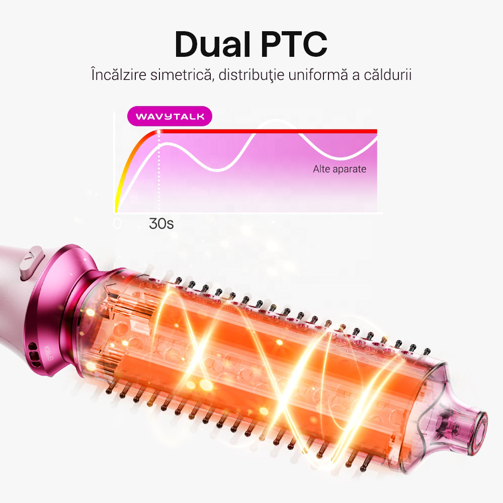 Da, cilindrii sunt realizați cu tehnologie PTC & Ceramică, care distribuie căldura uniform și reduce punctele fierbinți ce pot deteriora părul. Stratul ceramic ajută la menținerea hidratării și protejează firul de temperaturile ridicate, lăsând părul neted și strălucitor.