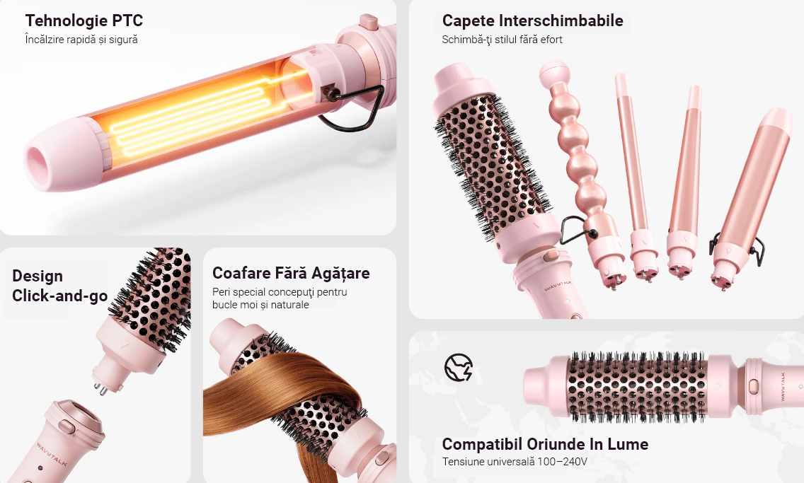 Absolut. Setul Wavytalk Multi Curl 5-în-1 este perfect pentru a crea onduleuri lejere, de tip „beach waves”. Peria termică, cu perii săi prelungiți, prinde delicat părul și îl ajută să se înfășoare pe cilindru pentru valuri netede și cu aspect natural.