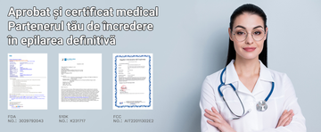 Epilare fără durere, cu funcție de răcire Ice Cooling. Mod automat de flash. 5 niveluri de energie reglabilă. Rezultate de durată.