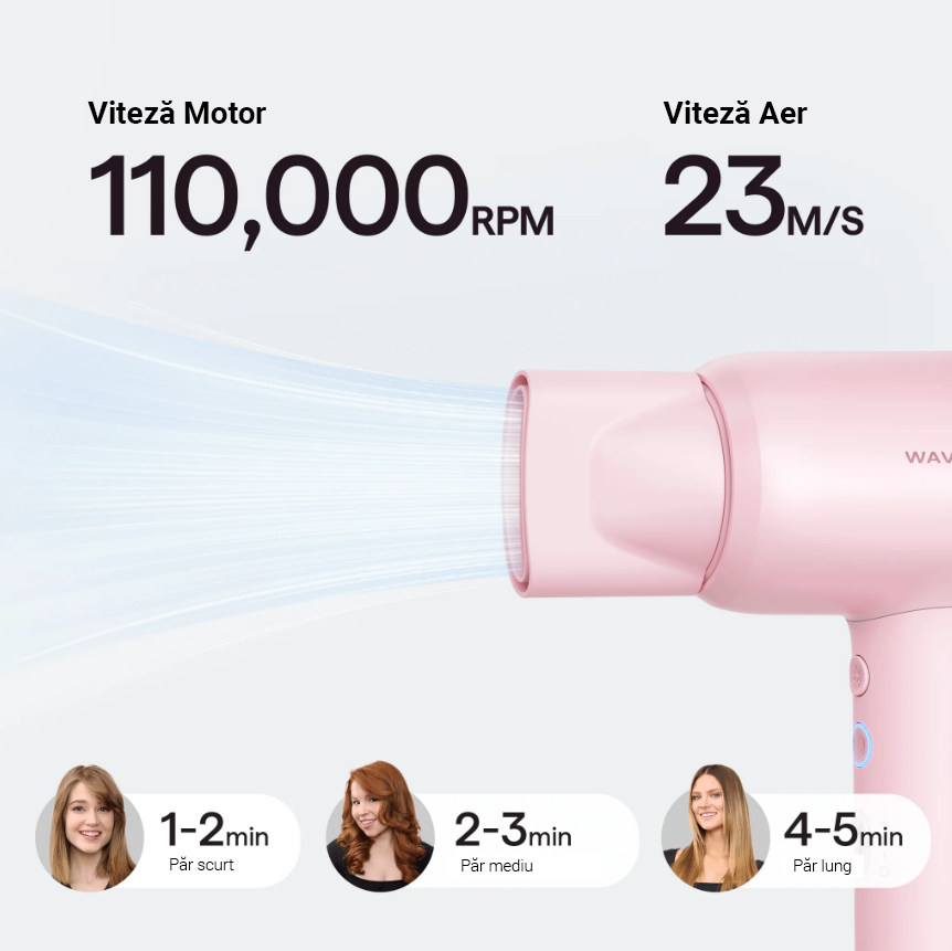 Adio, uscătoare banale! Acest uscător de păr ultra-rapid și super-puternic usucă părul de până la 5 ori mai rapid decât un model clasic. Cele două canale de admisie a aerului folosesc fluxul de aer, nu căldura, pentru deteriorare minimă și viteză maximă. Milioanele de ioni negativi combat electrizarea pentru un finisaj neted și strălucitor. Cu 3 viteze, 4 trepte de temperatură și 2 accesorii magnetice, treci ușor de la un look mătăsos și perfect drept la bucle moi, difuzate. Cântărind doar 390g, designul compact îți eliberează spațiu în bagaj pentru încă o pereche de pantofi.